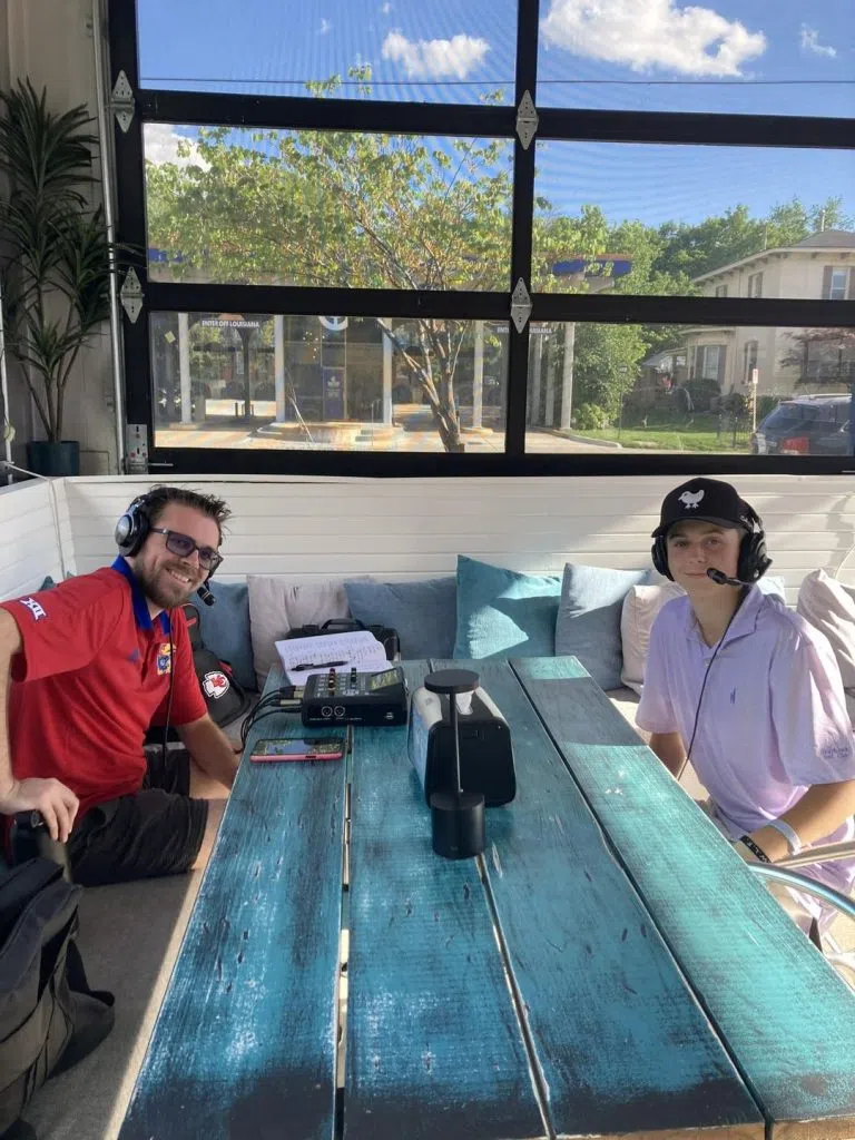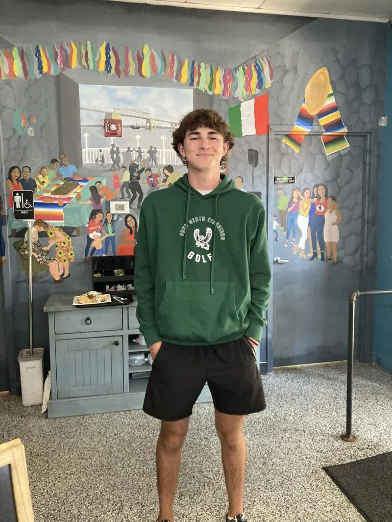 KLWN radio is live at Mama’s Tamales, where Nick is interviewing AJ Kimzey from Freestate Men’s Golf. AJ, a freshman, shares his journey into golf, revealing that he got started playing with his Dad and now beats him regularly. As the last High School Sports Weekly segment for the semester.